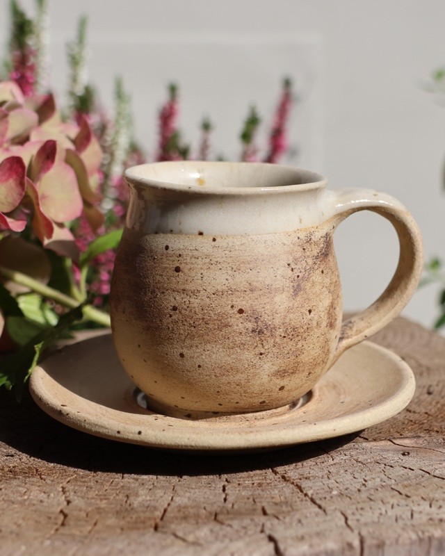 Die­se Espres­so­tas­se mit Unter­tel­ler wur­de in der der Töp­fe­rei Alte Schmie­de, Schier­ke hand­ge­töp­fert. Jedes Stück ist ein Uni­kat