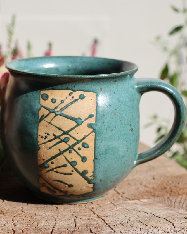 Die­se Tas­se mit einem Volu­men vonn 350 ml wur­de in der der Töp­fe­rei Alte Schmie­de, Schier­ke hand­ge­töp­fert. Jedes Stück ist ein Uni­kat
